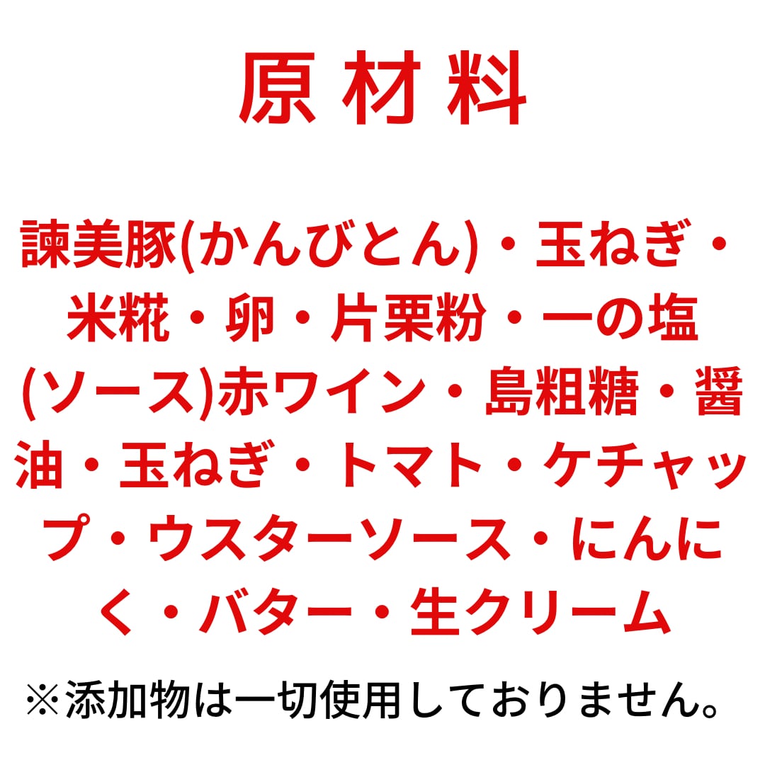 【原材料】諫美豚(かんびとん)・玉ねぎ・米糀・卵・片栗粉・一の塩