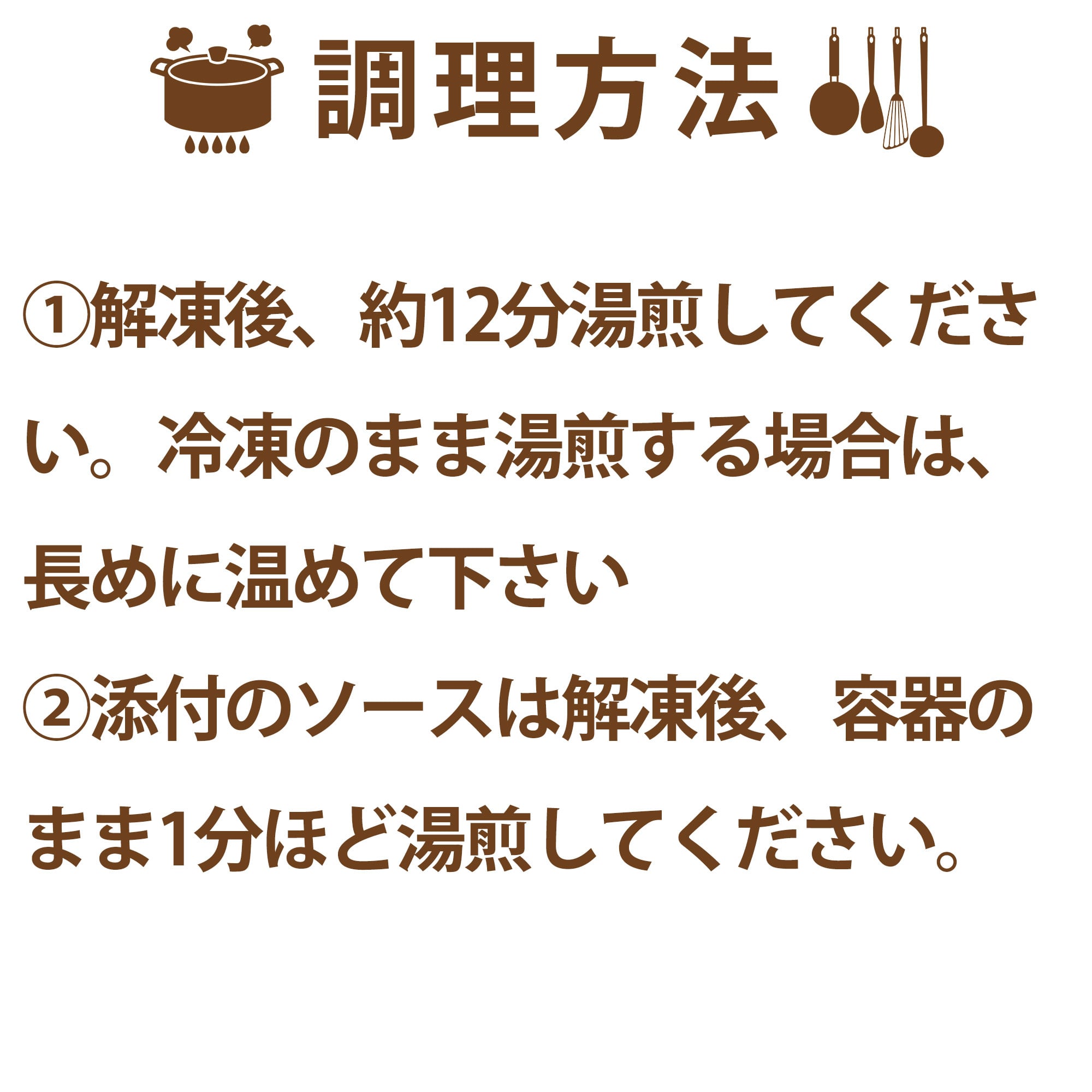 ②添付のソースは解凍後、容器のまま30秒ほど湯煎してください。